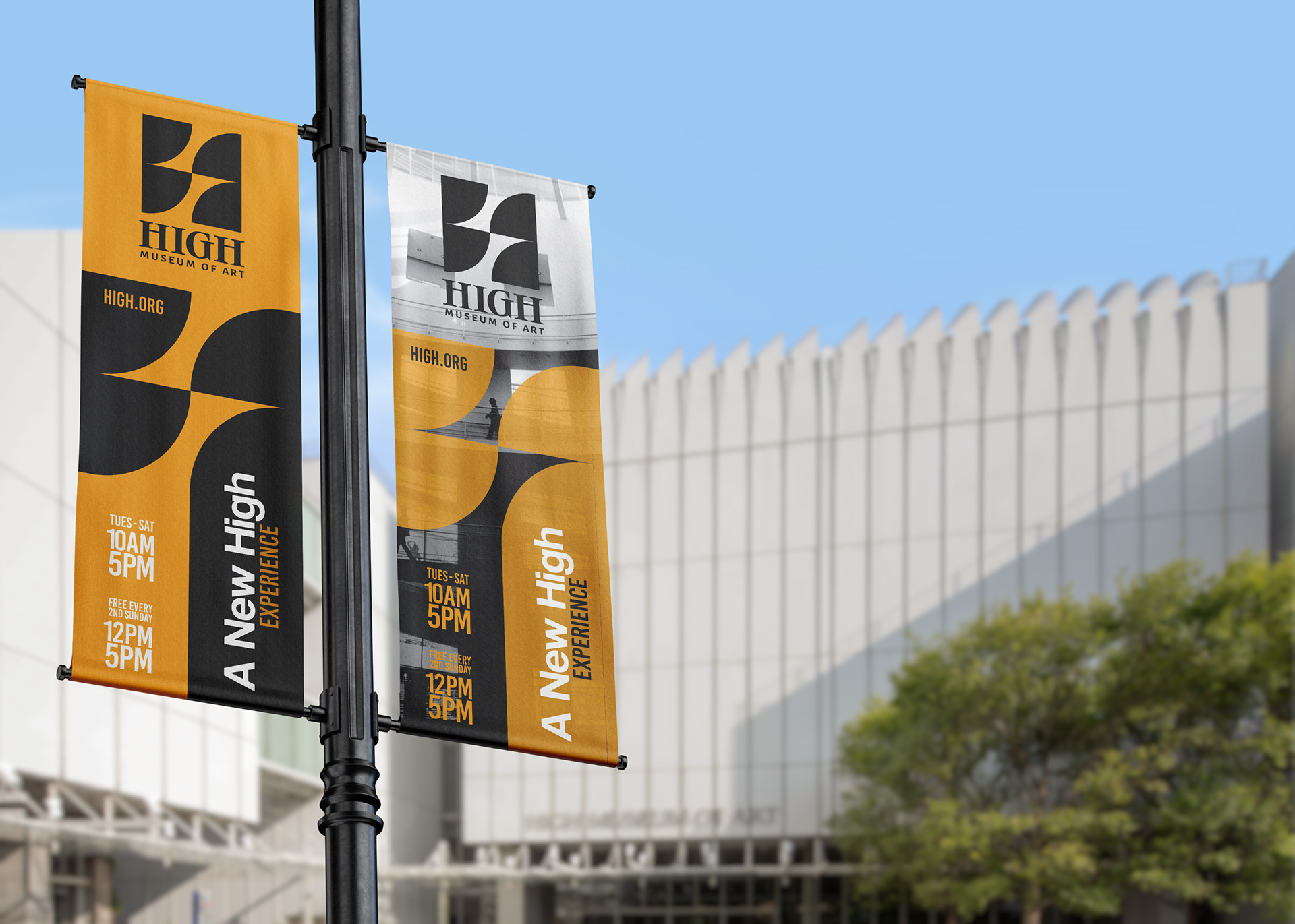 The High Museum project reimagines the museum’s brand through its iconic architecture. Drawing inspiration from the building’s unique shapes, windows, and structural forms, the design translates these elements into a visual identity that reflects the museum itself. Light and reflection serve as central design principles, capturing the interplay of space, form, and illumination, while creating a modern, cohesive look that honors the museum’s status as an Atlanta landmark.